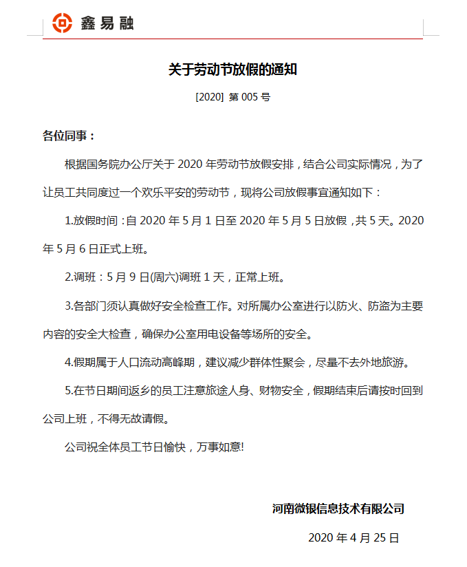 公司劳动节放假通知